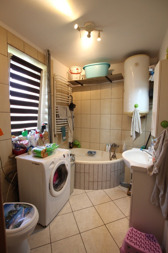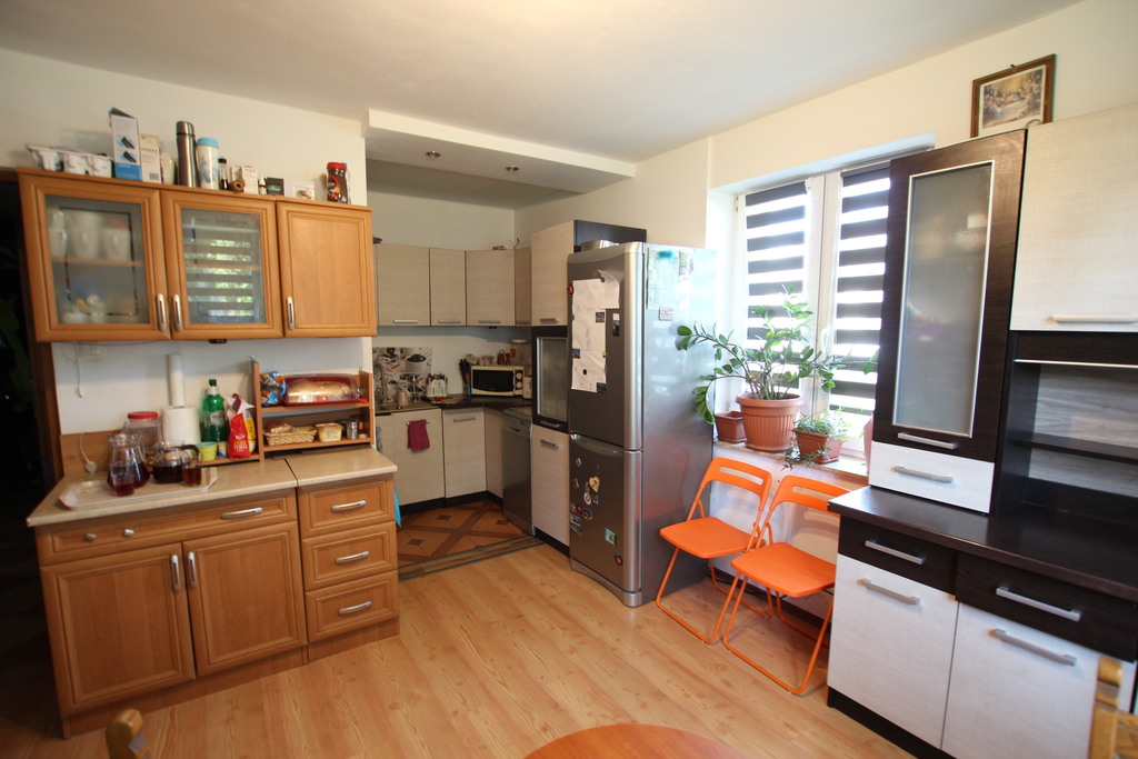 Na parterze domu jest salon, kuchnia, łazienka z toaletą oraz kotłownia.