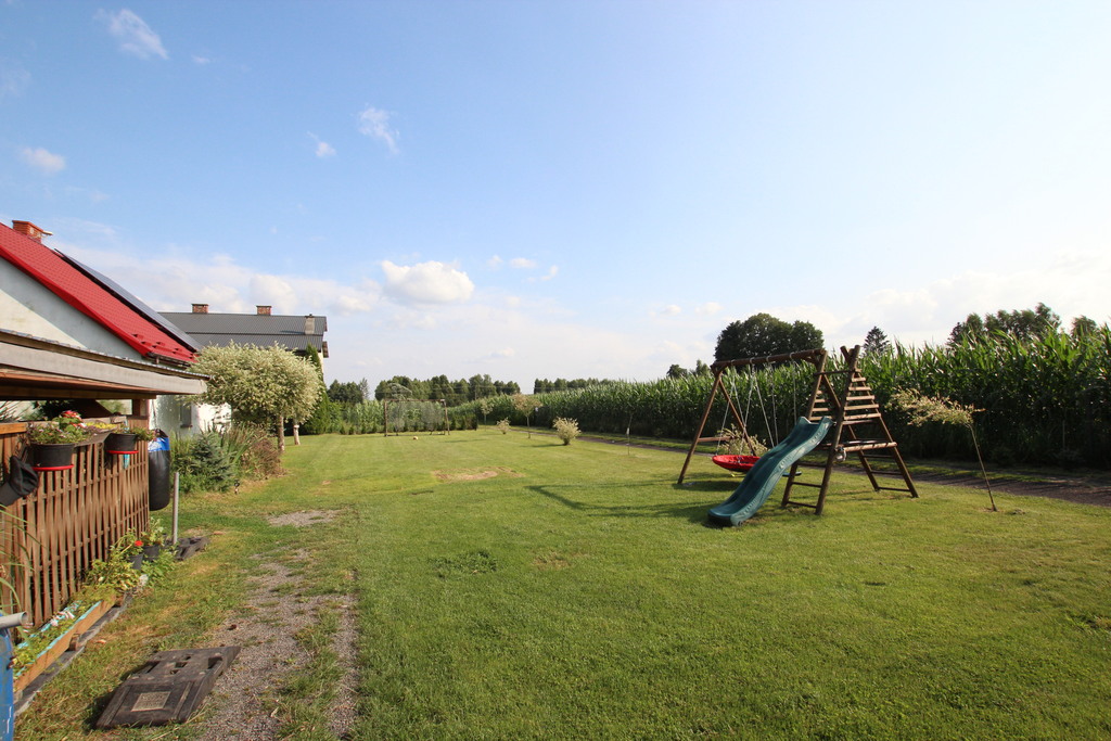 Na przepięknie zagospodarowanej części działki znajduje się wiele miejsca do wypoczynku i relaksu jak również do czynnego spędzania czasu.