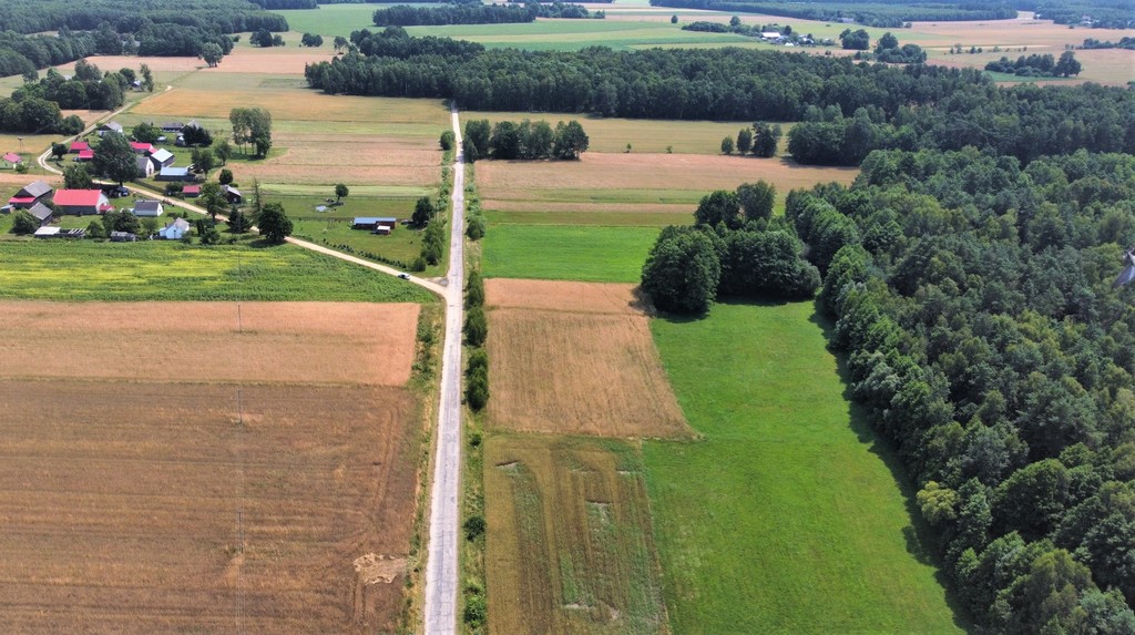Kształt działek prostokątny, szerokość od strony drogi dojazdowej to 33 metry, długość około 34 metrów.