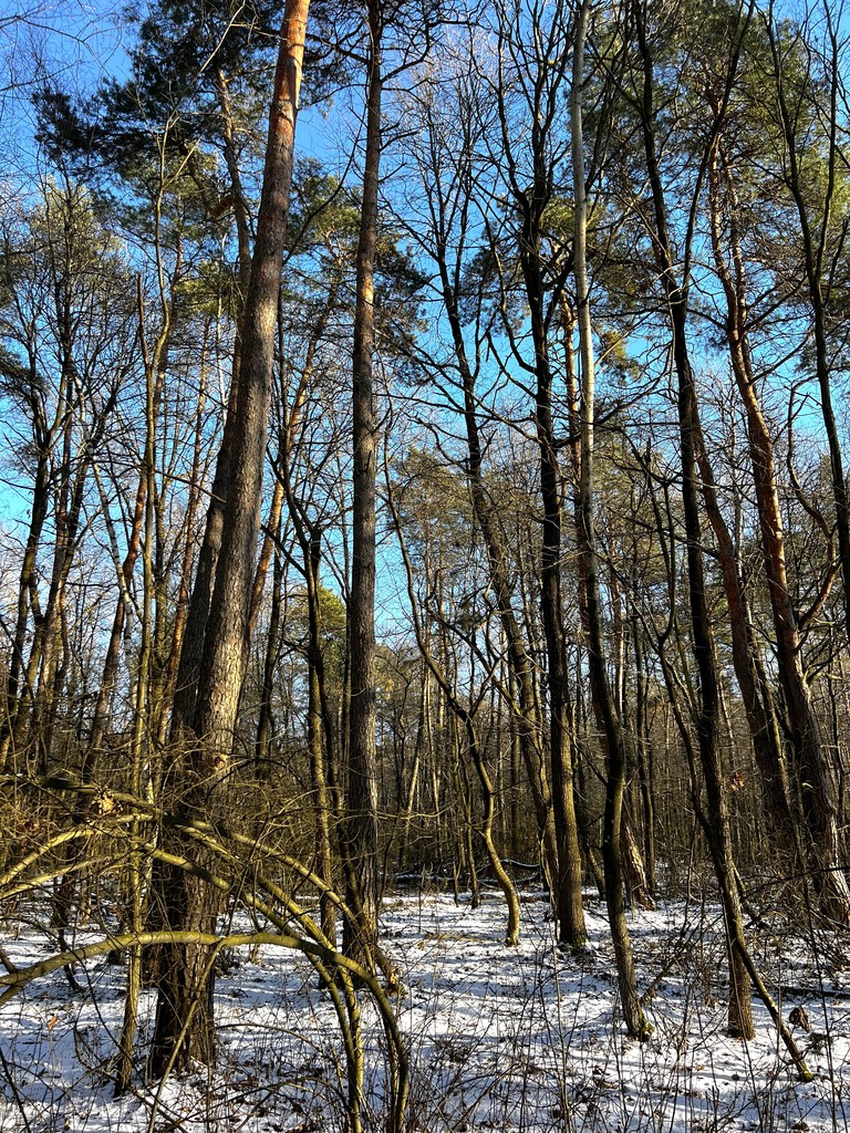 Drzewostan mieszany liściasto-iglasty, sosna, dąb, brzoza w wieku od 50 do 80 lat.