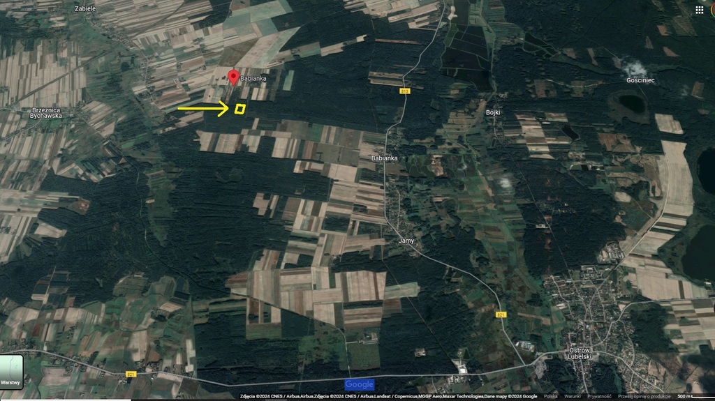 Dojazd do działki możliwy drogą polną od strony miejscowości Babianka,