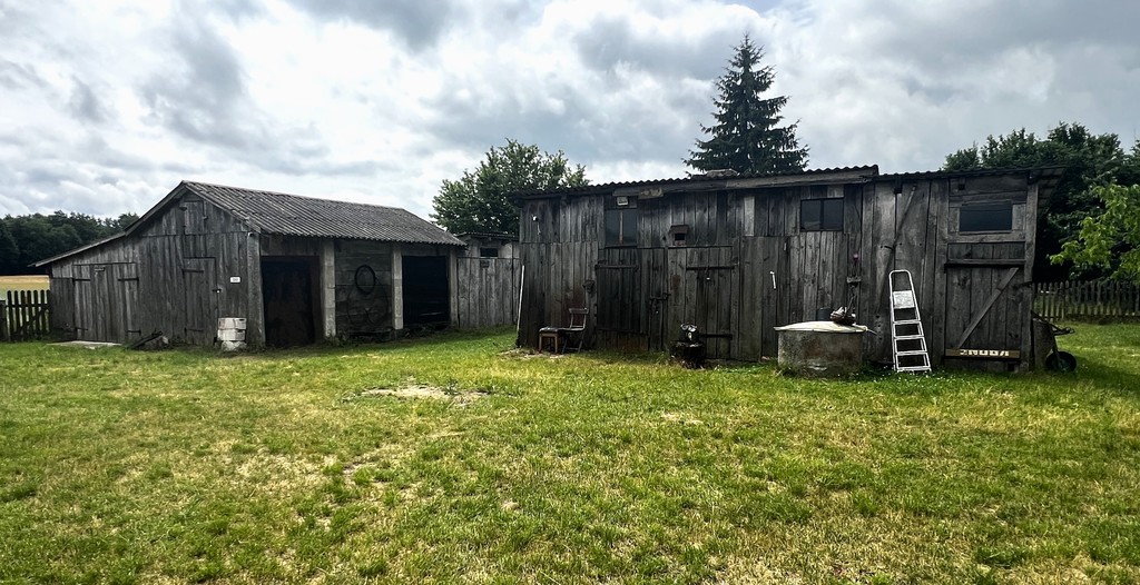 o powierzchni użytkowej 84 m2 oraz trzy drewniane budynki gospodarcze.