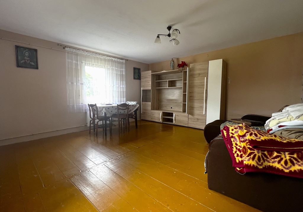 przedpokój, kuchnia, dwa pokoje, korytarz, kotłownia, łazienka i pomieszczenie do adaptacji na rozbudowę łazienki.