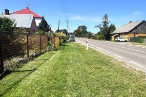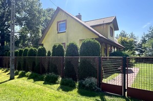 Posesja ogrodzona siatką, od stronu ulicy ogrodzenie metalowe.