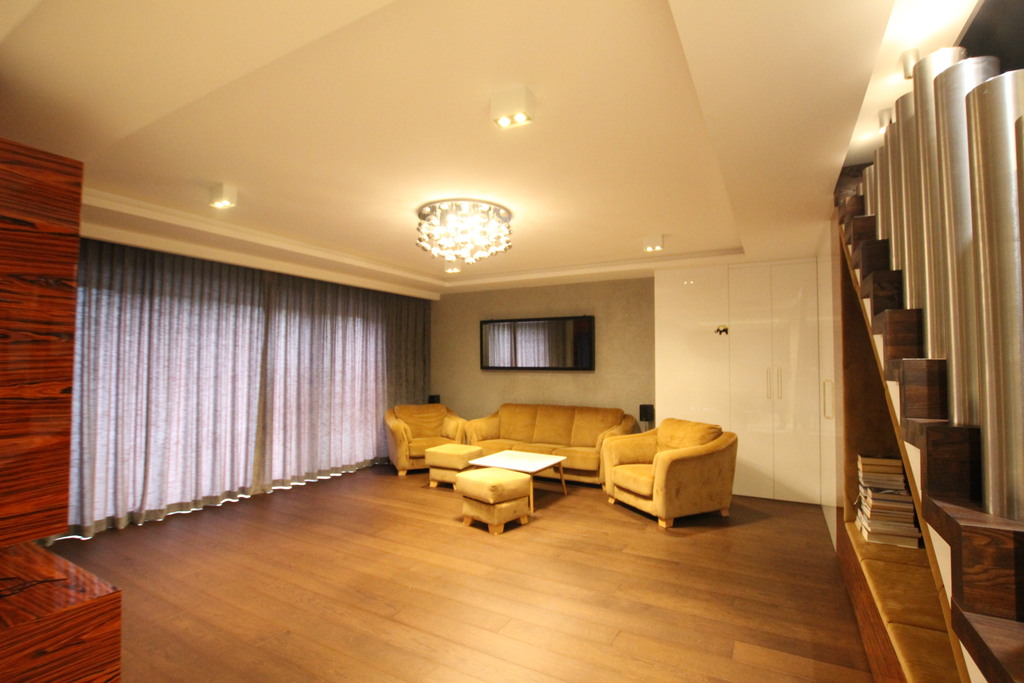 - salon o pow. 34 m2 z wyjściem na taras z zejściem do ogrodu,