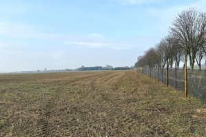 Strona wschodnia działki przylega do użytków rolnych na długości 152 metrów.