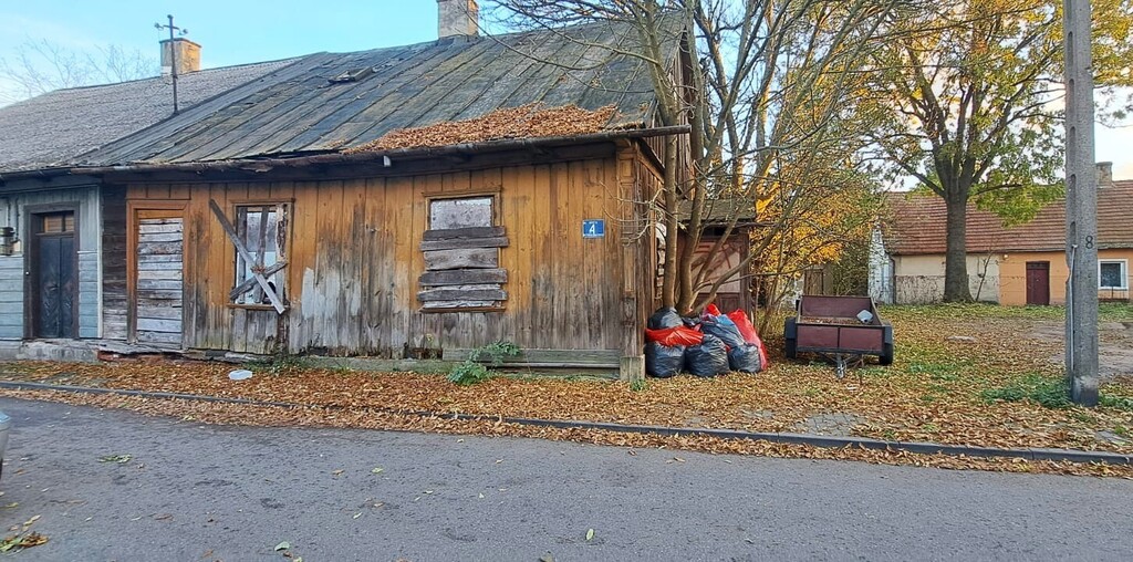 Na granicy działki znajduje się stary drewniany dom w zabudowie bliźniaczej oraz murowana komórka. Budynki są w stanie do rozbiórki. Teren działki jest równy, płaski.