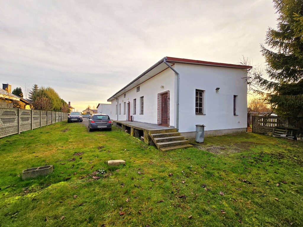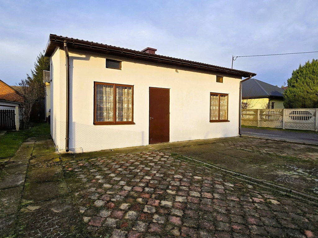 Budynek nr 1. o powierzchni całkowitej 140m2, wolnostojący, parterowy, podpiwniczony, zbudowany z suporeksu w 2001 roku, ocieplony, tynki cementowo-wapienne, dach z eternitu, okna drewniane - obecnie wynajmowany na sklep spożywczo-przemysłowy dla jednej z sieci handlowych.