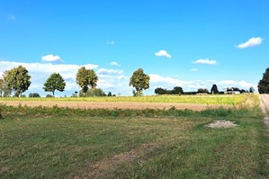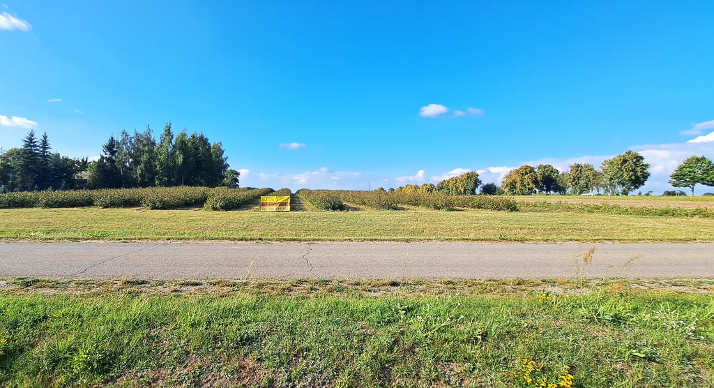 Tereny lekko nachylone, porośnięte porzeczkami.