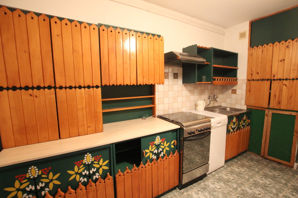 Na podłogach parkiet i mozaika, w kuchni, łazience i WC terakota.
