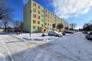 Lokal o powierzchni 48,89 m2 usytuowany na trzecim piętrze w czteropiętrowym bloku.