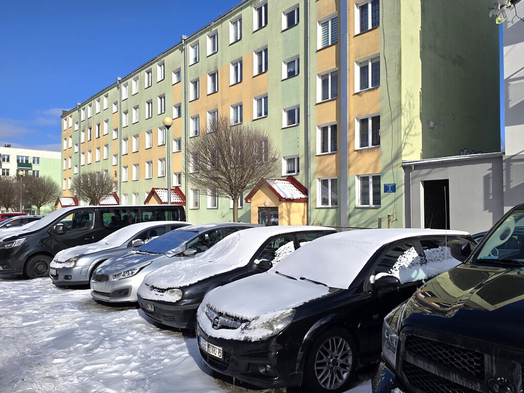 Parking ogólnodostępny pod blokiem, zabezpieczony szlabanem.