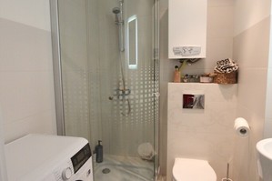 WYSOKI PARTER I PIĘTRO - odrębne wejście - salon z kuchnią, antresola, 2 pokoje, łazienka z wanną, łazienka z prysznicem, taras z wyjściem do ogrodu.