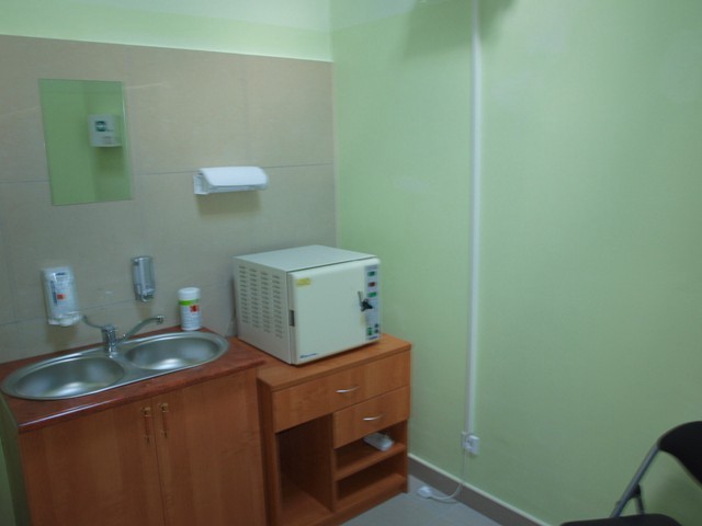 I piętro - przestronna poczekalnia, gabinety o następującej specjalizacji urologiczny i ginekologiczny, okulistyczny ( z ciemnią i potrzebnym sprzętem), laryngologiczny, kardiologiczny, medycyny pracy, diabetologiczny, endokrynologiczny, wad postawy, neurologiczny, gastrologiczny, reumatologiczny, otolaryngologiczny, alergii i pulmonologii, stomatologiczny ( wraz ze sprzętem),dermatologiczny wraz z gabinetem zabiegowym.
