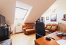 Na piętrze (4 piętro budynku) znajdują się 3 sypialnie (w tym jedna z balkonem), łazienki (wanna) z toaletą, przedpokoju, gabinetu i garderoby.