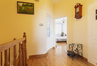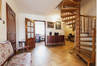 W salonie znajdują się drewniane schody prowadzące na piętro.