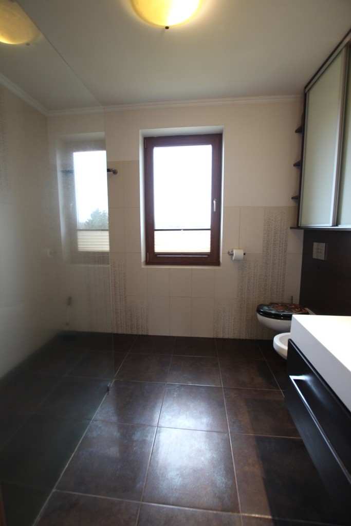 Na poddaszu znajdują się dwie sypialnie, pokój rekreacyjny, antresola, garderoba z oknem, łazienka (prysznic).