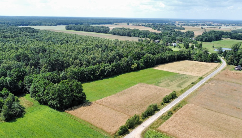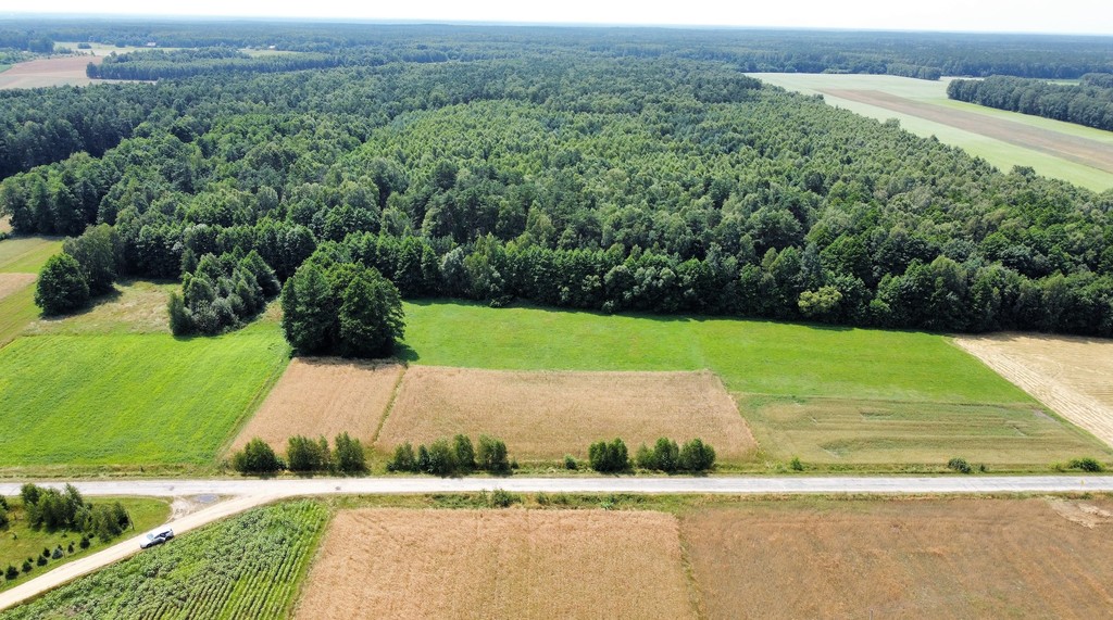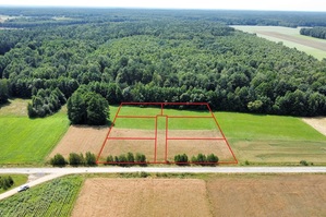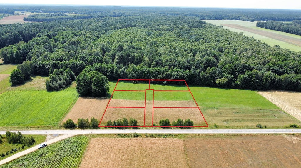 Kształt działek prostokątny, szerokość od strony drogi dojazdowej to 33 metry, długość około 34 metrów.