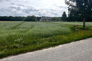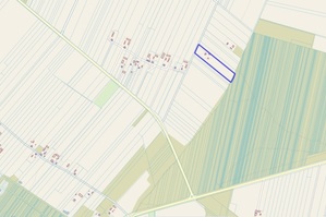 Wymiary działki to, od strony północno-wschodniej 60 metrów szerokości, wzdłuż drogi asfaltowej,