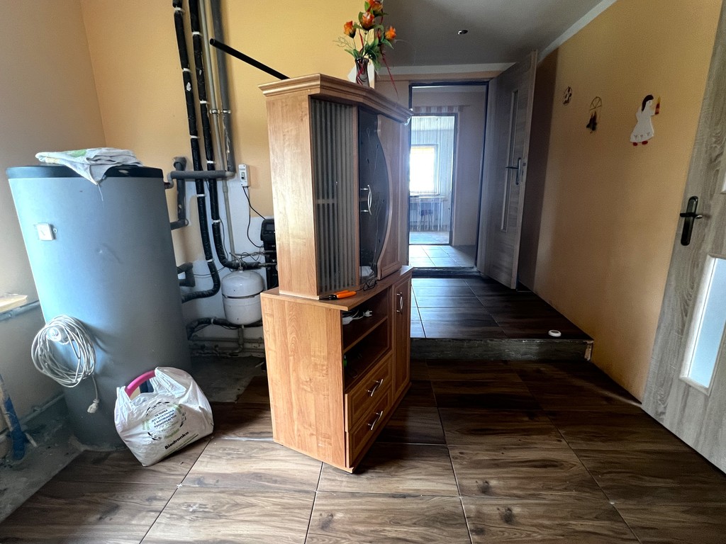 przedpokój, kuchnia, dwa pokoje, korytarz, kotłownia, łazienka i pomieszczenie do adaptacji na rozbudowę łazienki.