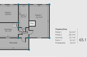o powierzchni użytkowej 65 metrów kwadratowych,a w jego skład wchodzą