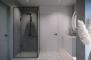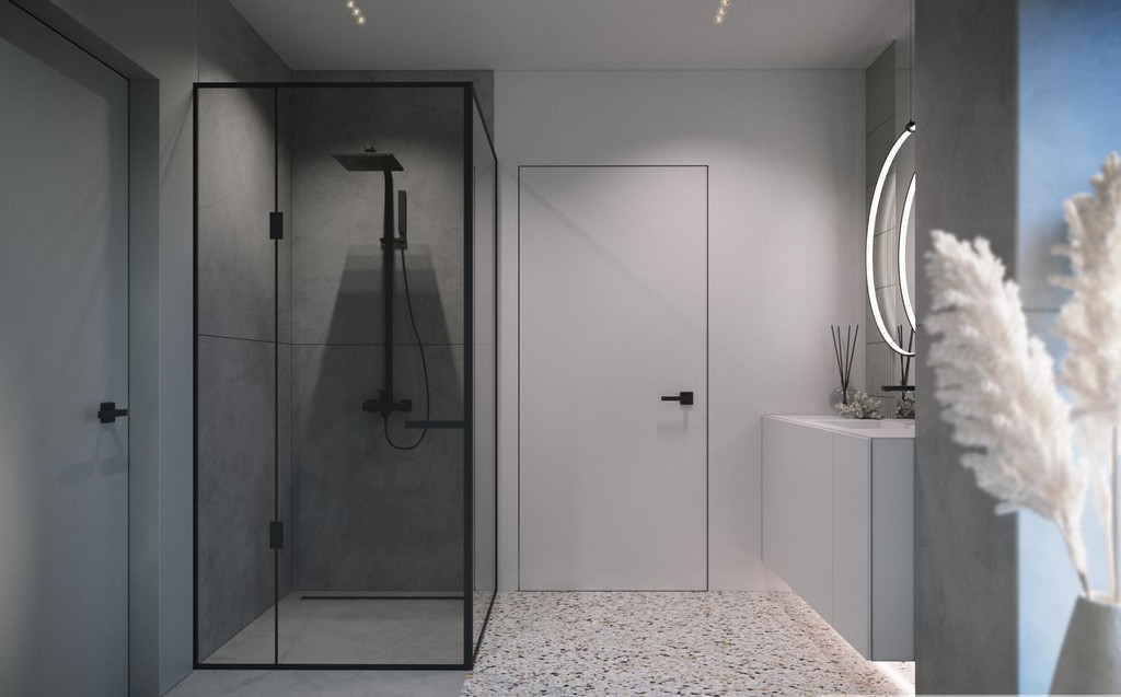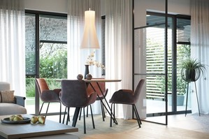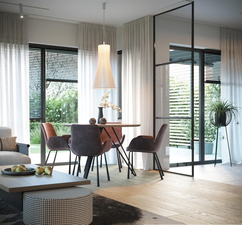 okna PCV siedmiokomorowe, drzwi zewnętrzne i garażowe, rolety zewnętrzne sterowane radiowo pilotem, stelaż pod dwa klimatyzatory i pod sanitariaty.