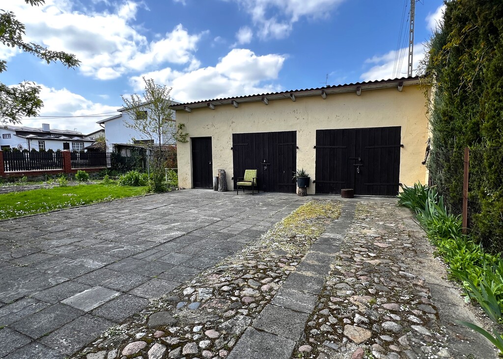 Na działce dodatkowo znajduje się murowany budynek gospodarczy, o wymiarach 8 m x 8 m, który pełni funkcję garażu i komórki.