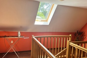Ogrzewanie domu zasilane przez kominek znajdujący się na parterze.