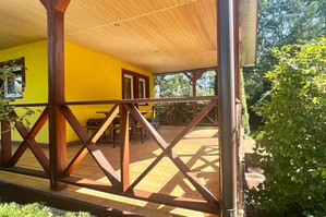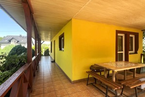Wokół domu znajdziemy liczne nasadzenia drzew i krzewów, a w ogrodzie znajdziemy piwniczkę ziemną.