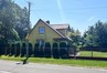 Posesja ogrodzona siatką, od stronu ulicy ogrodzenie metalowe.