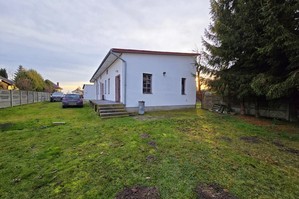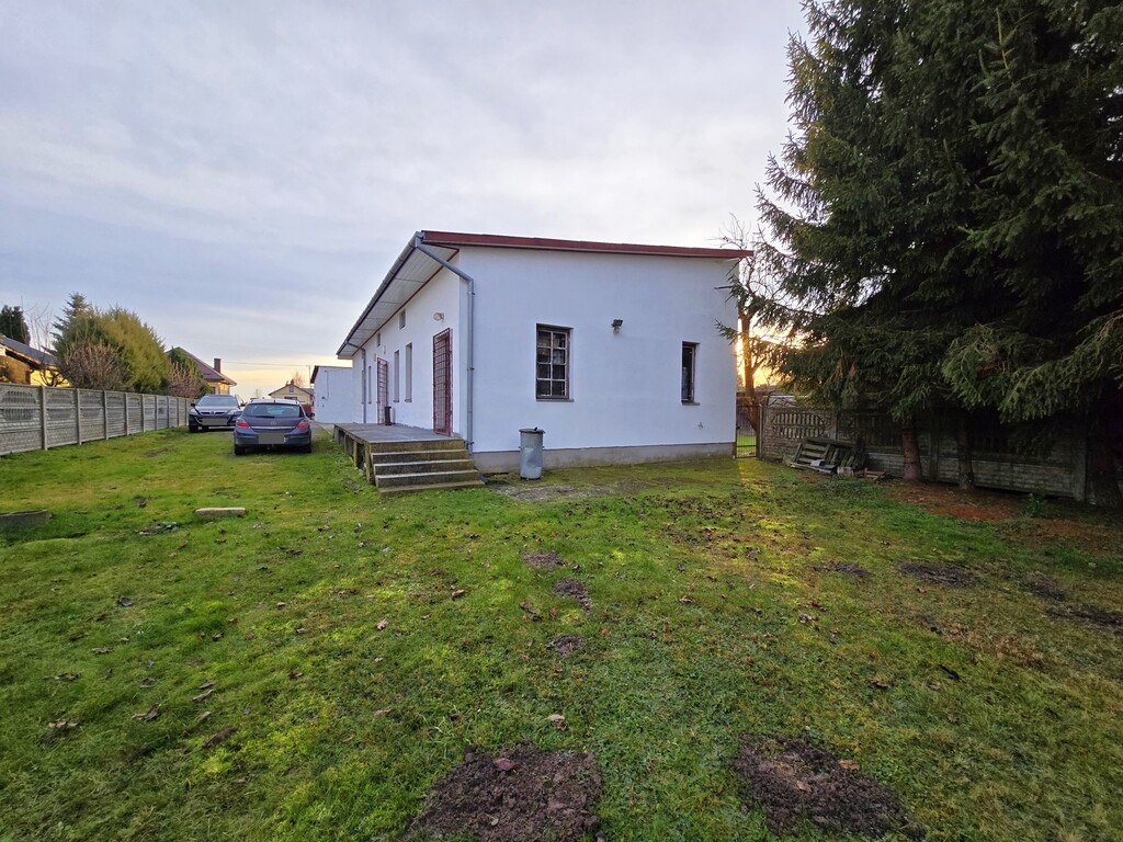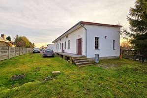 Budynek nr 1. o powierzchni całkowitej 140m2, wolnostojący, parterowy, podpiwniczony, zbudowany z suporeksu w 2001 roku, ocieplony, tynki cementowo-wapienne, dach z eternitu, okna drewniane - obecnie wynajmowany na sklep spożywczo-przemysłowy dla jednej z sieci handlowych.
