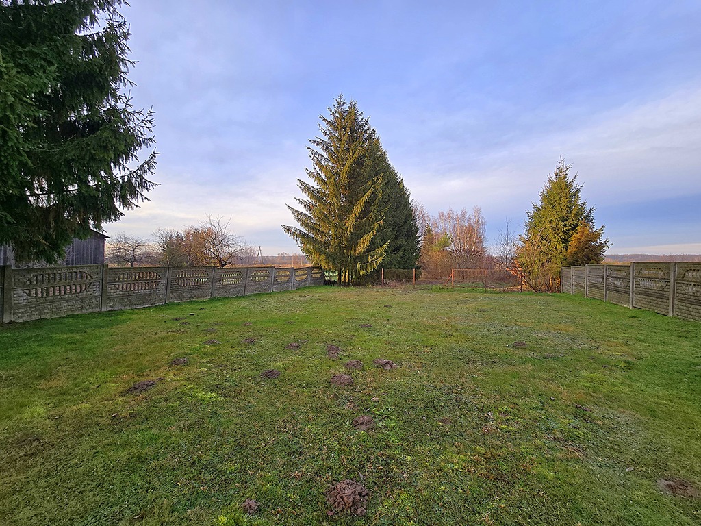 Działka o powierzchni 5400m2, około 1/3 ogrodzona częściowo betonowymi przęsłami, od ulicy murowany parkan z drewnianymi przęsłami i bramą wjazdową.