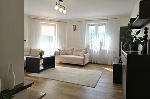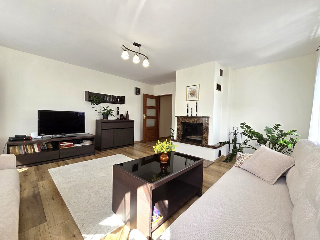 W kuchni i w łazience ogrzewanie podłogowe. W salonie kominek.