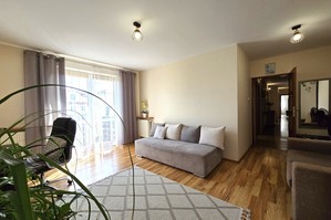 W cenie pozostaje zabudowa kuchni, szafa wnękowa, szafy w pokojach (reszta umeblowania do uzgodnienia).