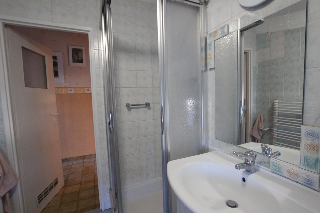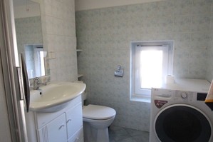 I kondygnacja-pokój z kominkiem który ma rozprowadzenie cieplne na cały dom, oddzielna kuchnia, łazienka z kabiną prysznicową i WC, dodatkowym pomieszczeniem jest letnia kuchnia z nowym piecem kaflowym, lodówką, zmywarką oraz spiżarnia, suszarnia i kotłownia.