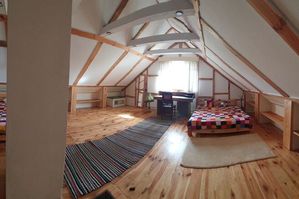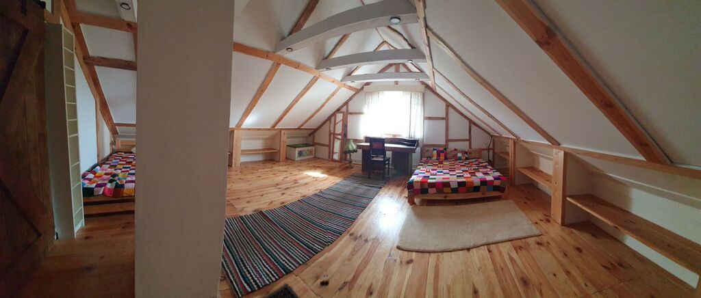 - Dwa bardzo duże pokoje połączone korytarzem, w każdym z pokoi możliwość noclegu dla 4 osób.
