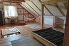 We wszystkich pomieszczeniach na dole położone płytki podłogowe i zachowane elementy drewnianych bali (część sufitów, część ścian).
