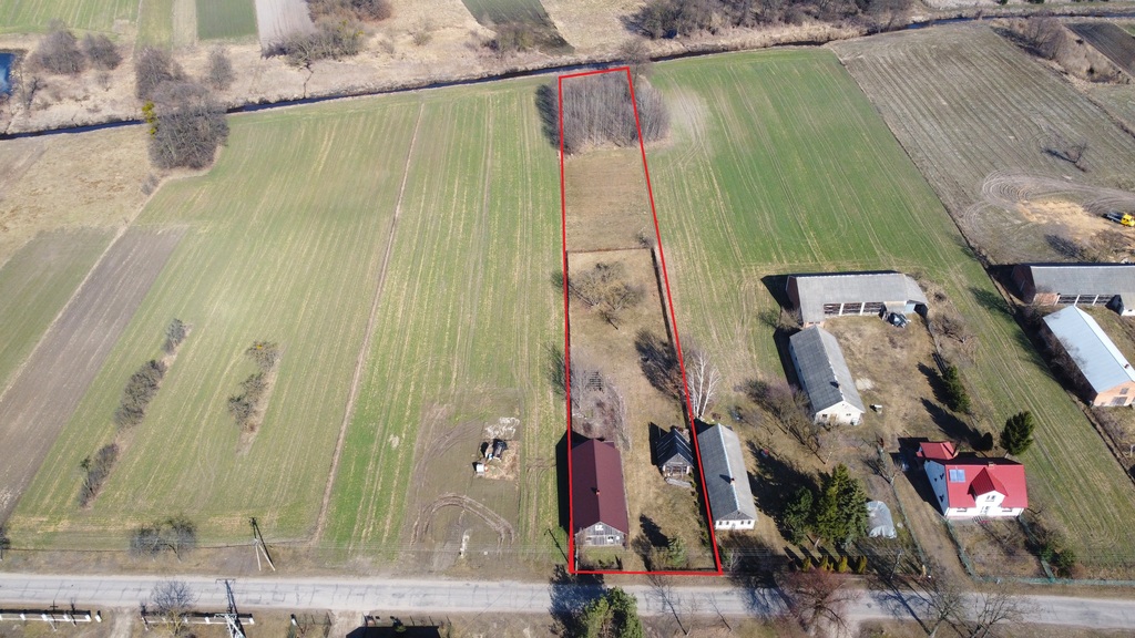 Północna granica działki przylega do rzeki Piwonii. Dojazd do działki drogą asfaltową